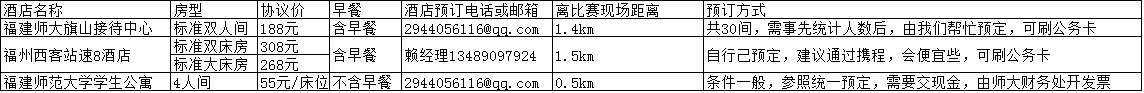 1、 福建师大旗山接待中心:标准双人间,188元(协议价),含早餐,距离竞赛现场1.4km,共30间;