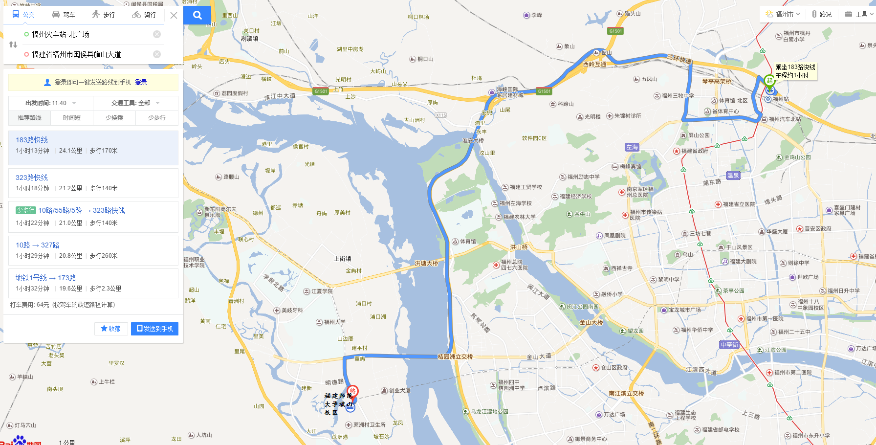 1、从福建站到福建师范大学旗山校区