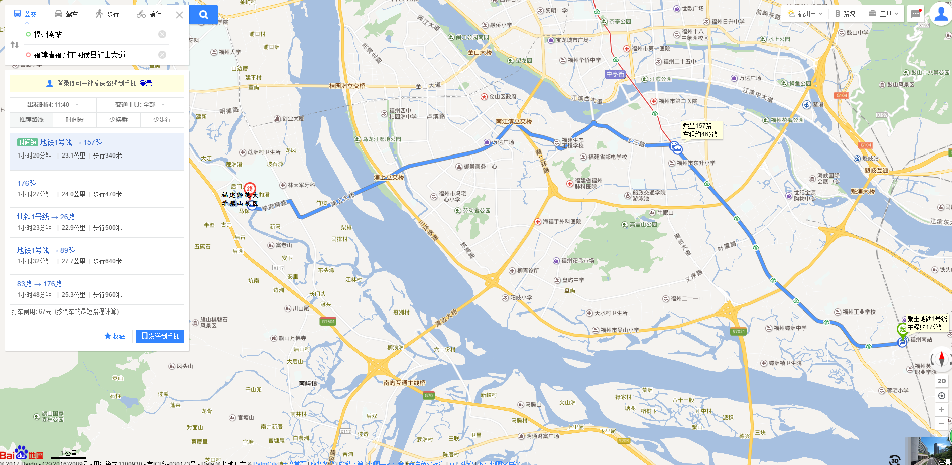 2、从福建南站到福建师范大学旗山校区
