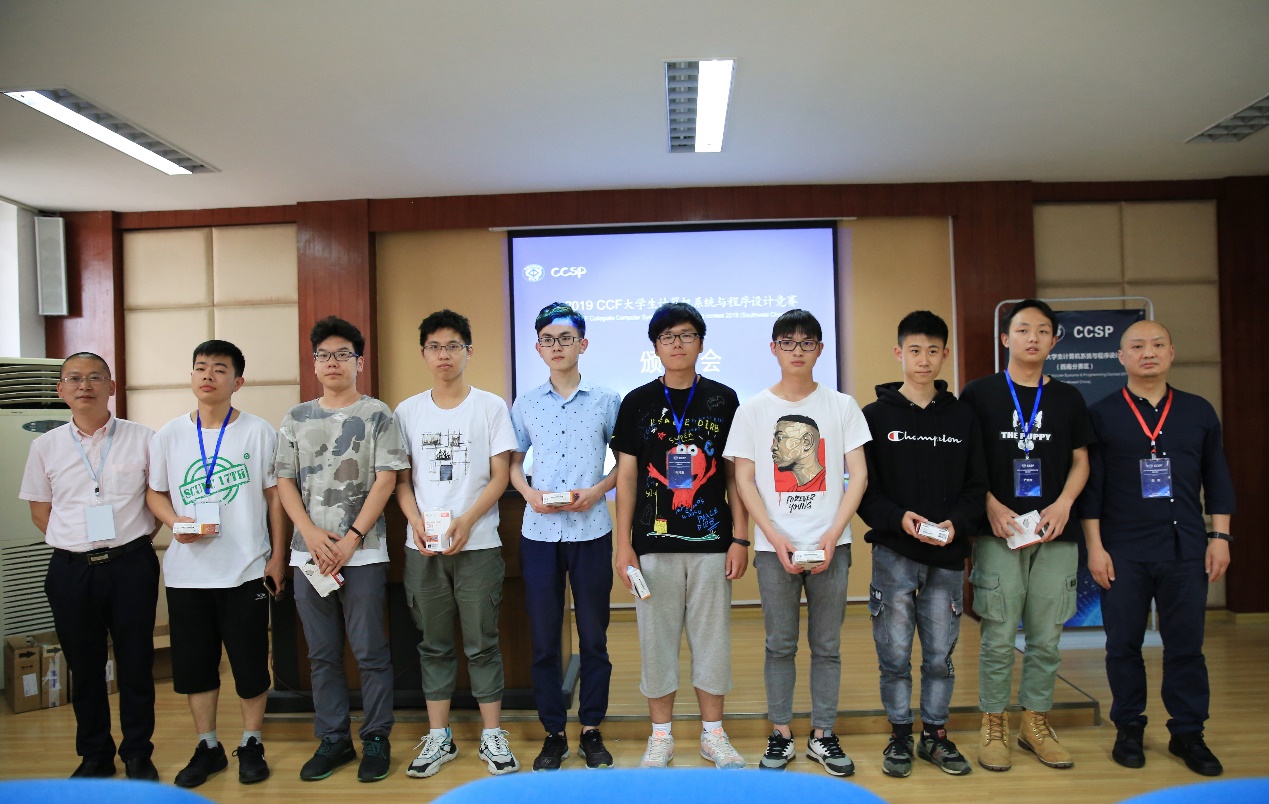 经过6个小时的激烈角逐,产生了金、银、铜的各个奖项,其中获得金奖的8名选手依次为廖小澄(云南大学)、唐天舒(重庆邮电大学)、向鸿鑫(云南大学)、黄思杰(重庆邮电大学)、汪照文(四川大学)、刘衡(四川大学)、李孟浩(四川大学)、严柯文(四川大学)。在西南分赛区的颁奖会上,表彰了获奖选手。CCF成都新一届执行委员李德龙(成都上程数据有限公司总经理)、重庆邮电大学谢竞博、云南大学计算机科学与工程系主任袁国武、四川大学计算机学院琚生根老师等作为颁奖嘉宾为选手们颁奖。