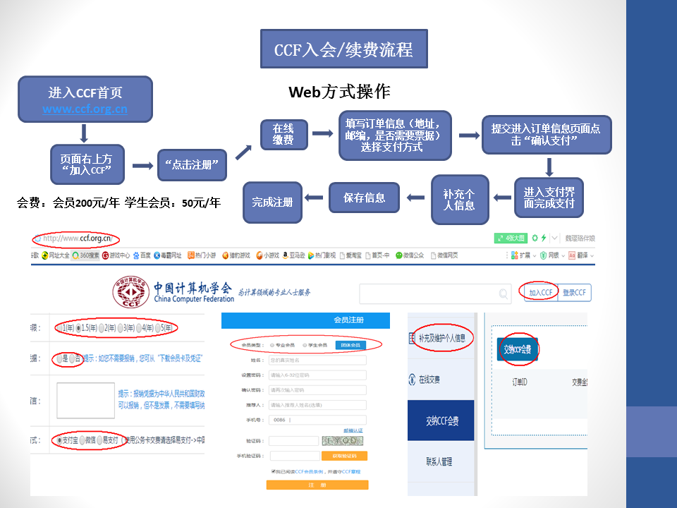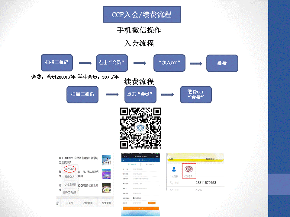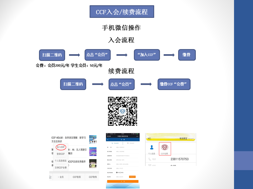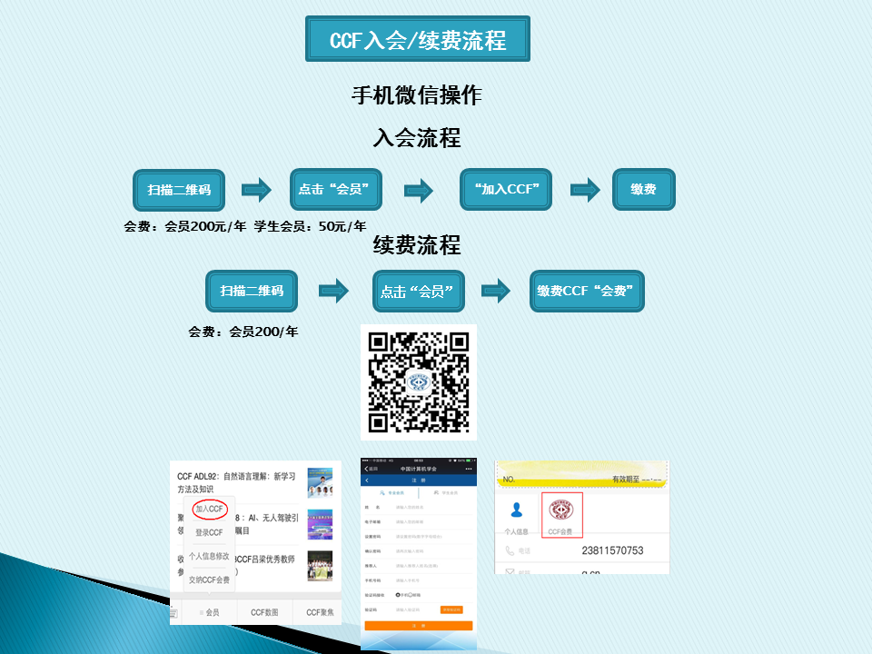 在CCF网站首页,点击“加入CCF”按钮,进入会员注册页面或扫描CCF公众号二维码加入,根据实际情况,选择“会员注册”、“学生会员注册”、“单位会员”进行注册;