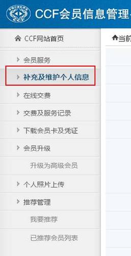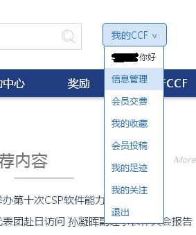 2、在右上角“我的CCF”处,选择“信息管理”,进入个人信息管理平台。